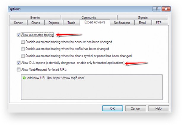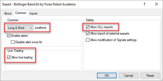 أيضًا، يجب تفعيل "تمكين التداول المباشر " للسماح لـ EA بالتداول تلقائيًا. بمجرد التحقق من الخيارات المذكورة أعلاه بشكل صحيح، يتم تمكين EA للقيام بالتداول الآلي.